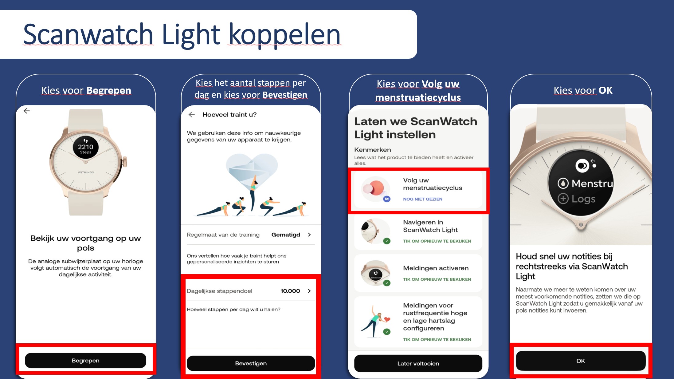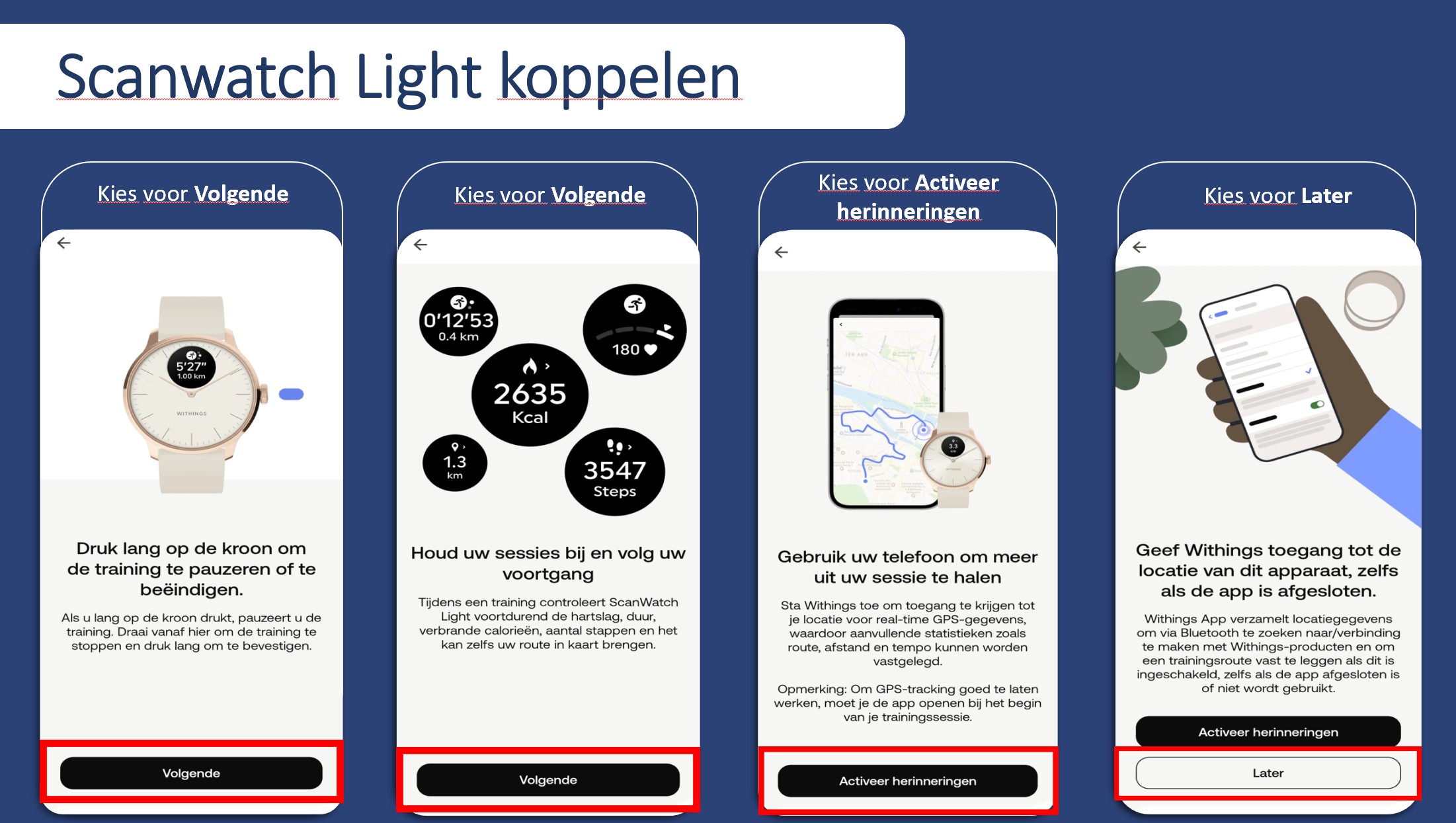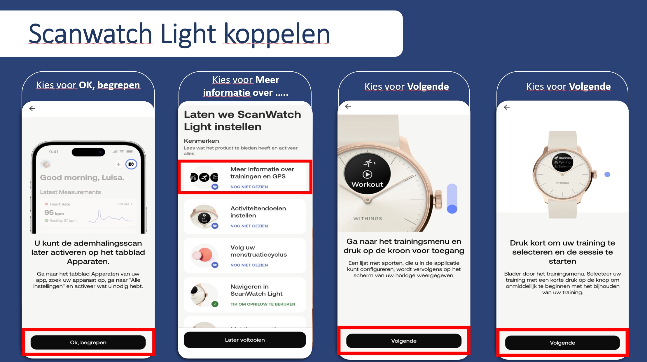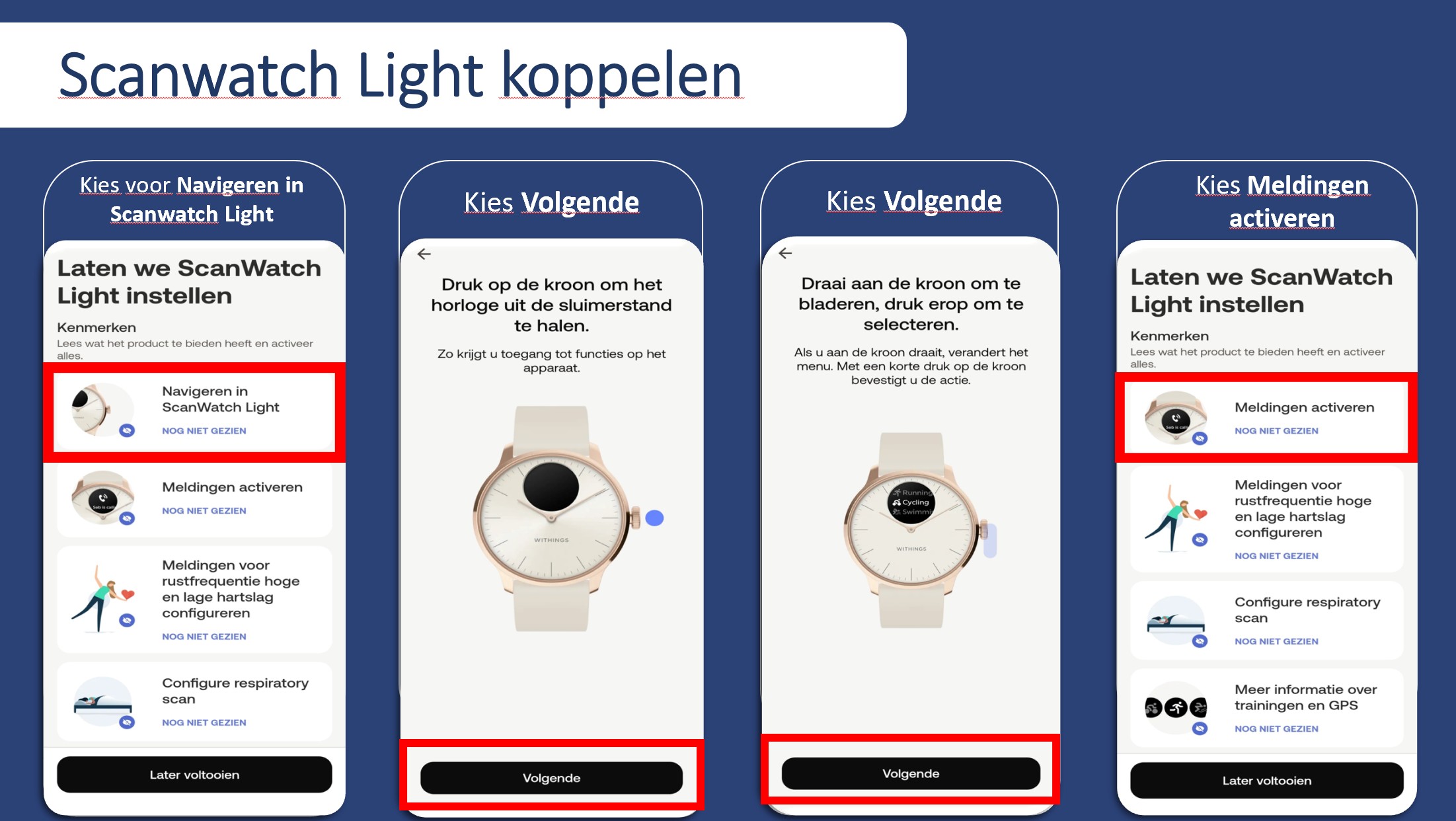 Scanwatch reageert niet met de Withings app *Dit artikel geld voor zowel Android als iPhone gebruikers. Scanwatch update: Open de Withings app Druk rechts bovenin op het icoontje het kleine klokje Scroll om te zoeken naar de Scanwatch en kies voor ...