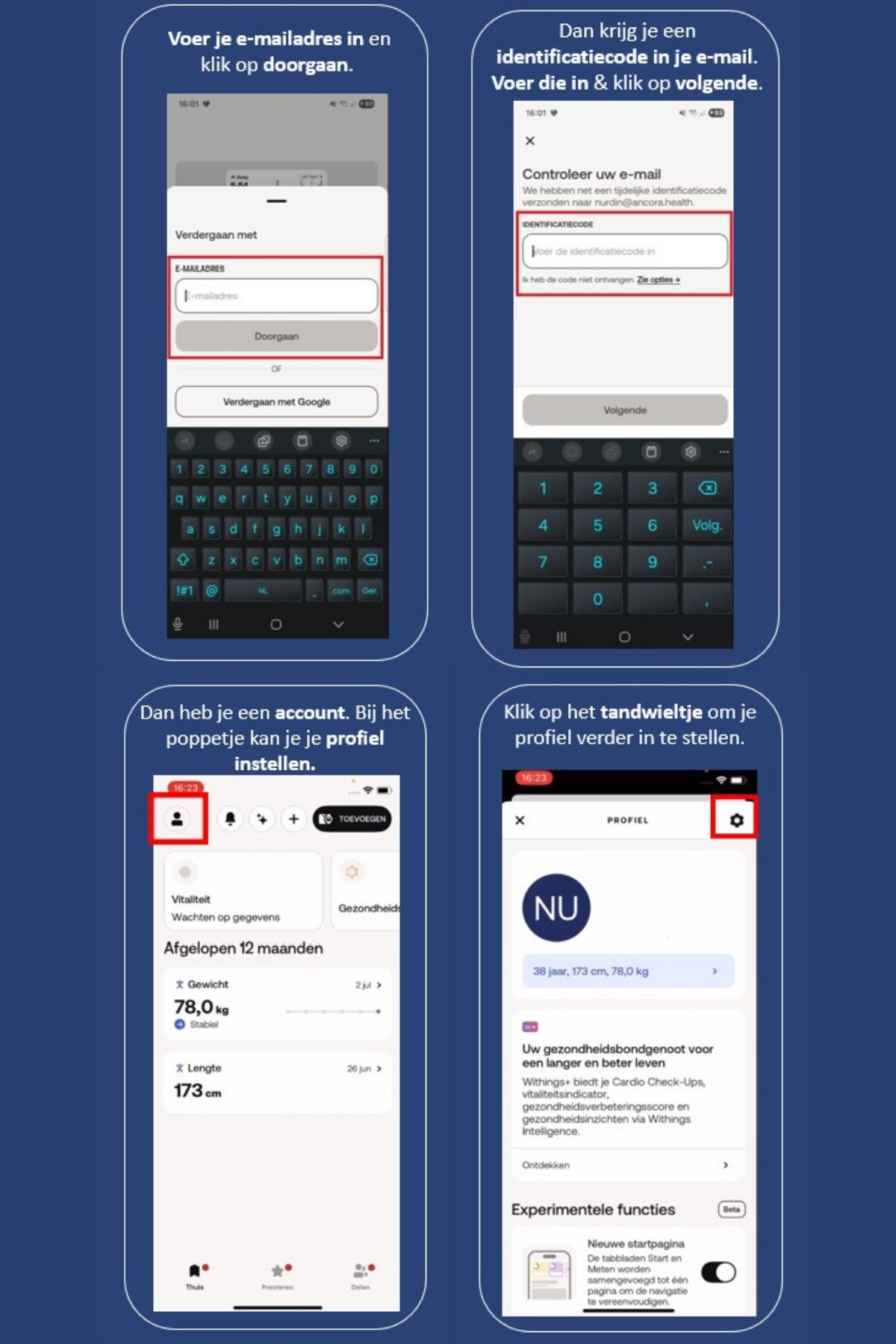 Het stappenplan hieronder laat zien hoe je de Withings health mate app koppelt aan de Ancora Health app. Dit is nodig zodat het ziekenhuis je data kan zien. 1) 2) 3) 4) - Of bekijk de video. - LET OP: Door updates in de Withings apps kan het zijn dat ...