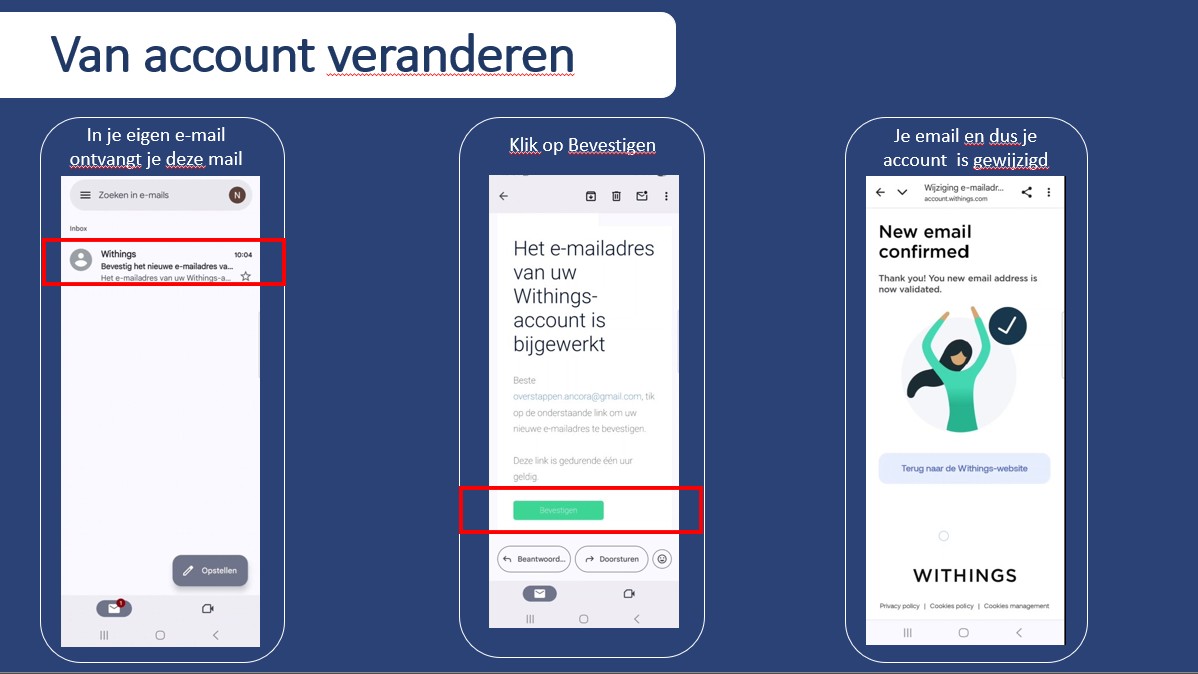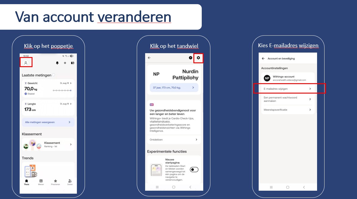1) In de eerste video zie je hoe je van e-mailadres veranderd in de Withings Health Mate app.