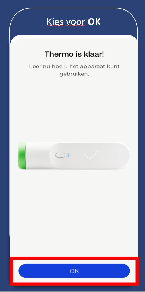 3. De thermometer is klaar voor gebruik! In een volgende video en uitleg laten we zien hoe je een meting kan doen.