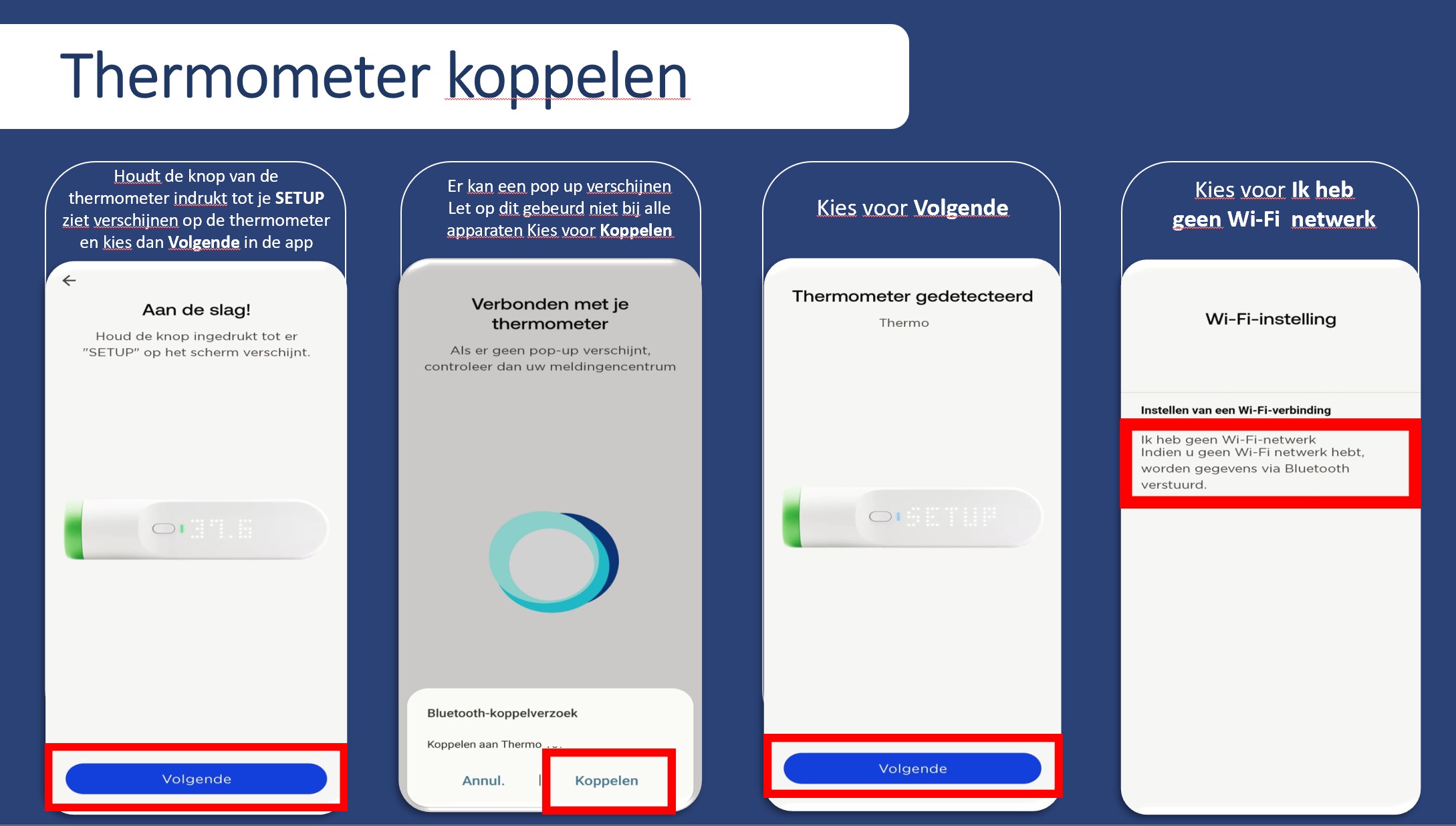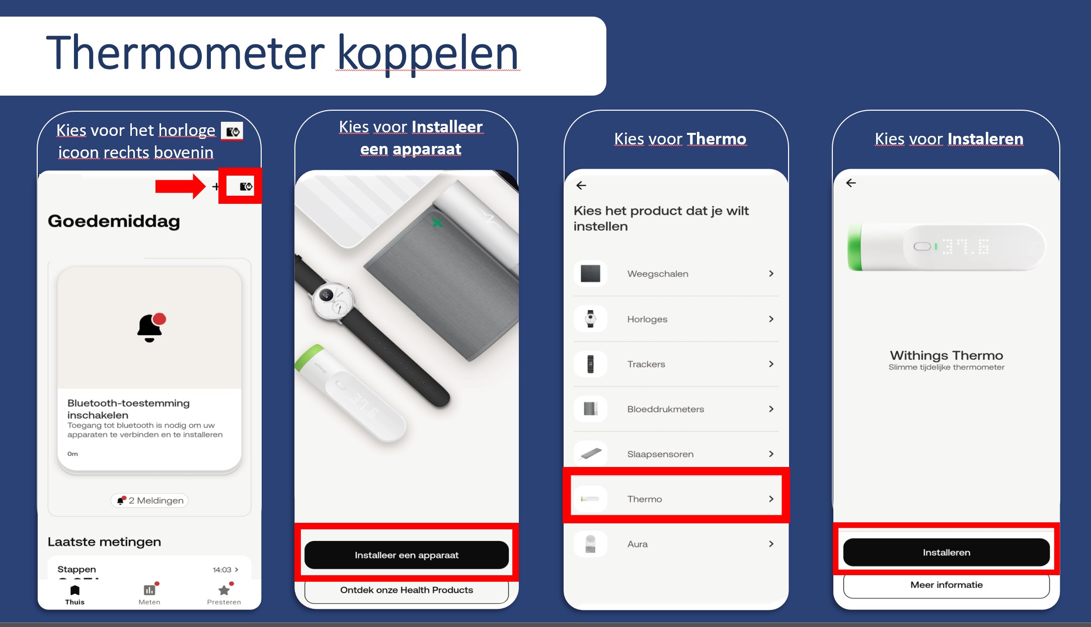 In de volgende stappen zie je hoe je de thermometer kunt installeren.